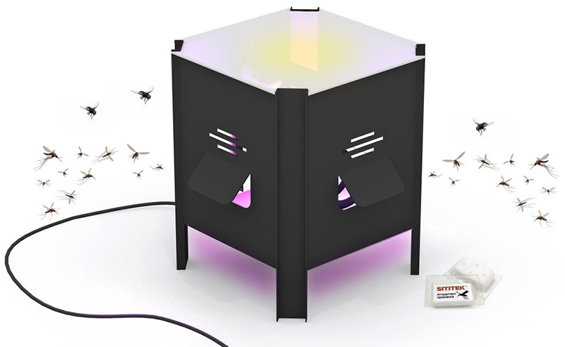 Устройство SITITEK Mosquito Cube предназначено для уничтожения всех летающих насекомых, кроме ос и пчел. Для этого уничтожитель использует УФ свет, тепло и запах аттрактанта, эти приманки эффективно заманивают комаров, мух, мошек, слепней, моль и пр. надоедливых насекомых внутрь корпуса, где они быстро погибают от обезвоживания. Ловушка от комаров и мух способна работать как в помещениях, так и на улице, площадь воздействия — до 150 кв. м.